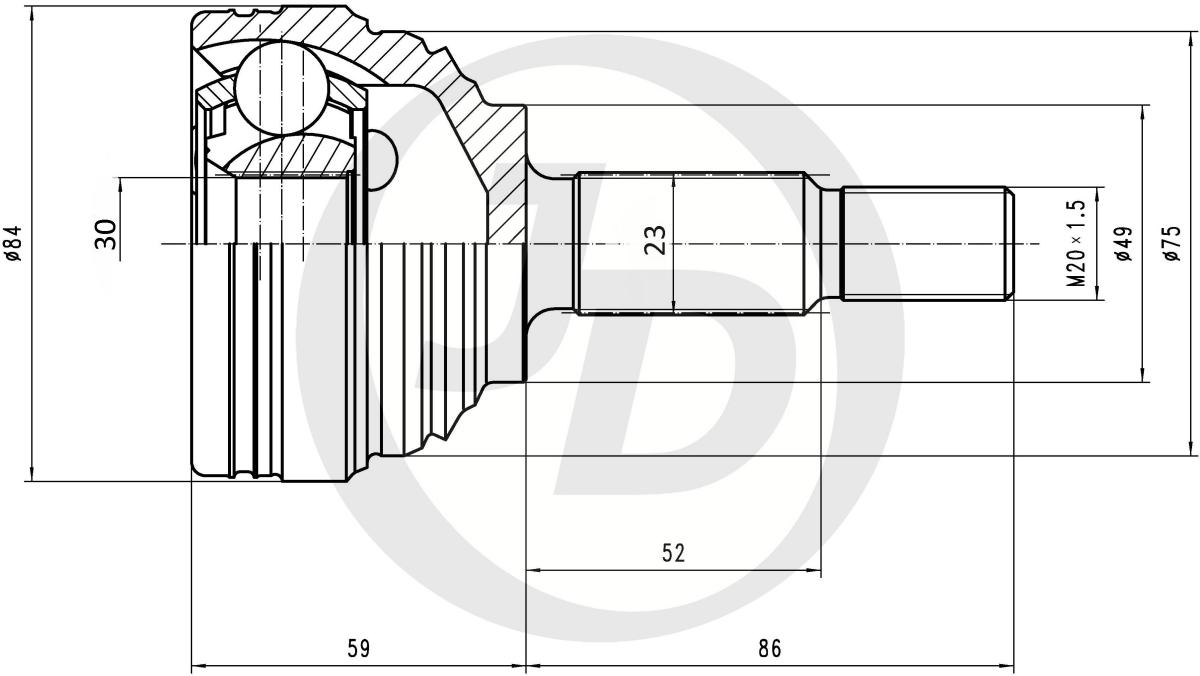 Шрус наружный Logan (05-14)/Megan (02-09)/Clio 3 (05-11) 23x30 зубьев (арт. JCT0313)