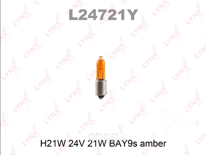 Автолампа H21W 24V BAY9s AMBER (желтая) (арт. L24721Y)